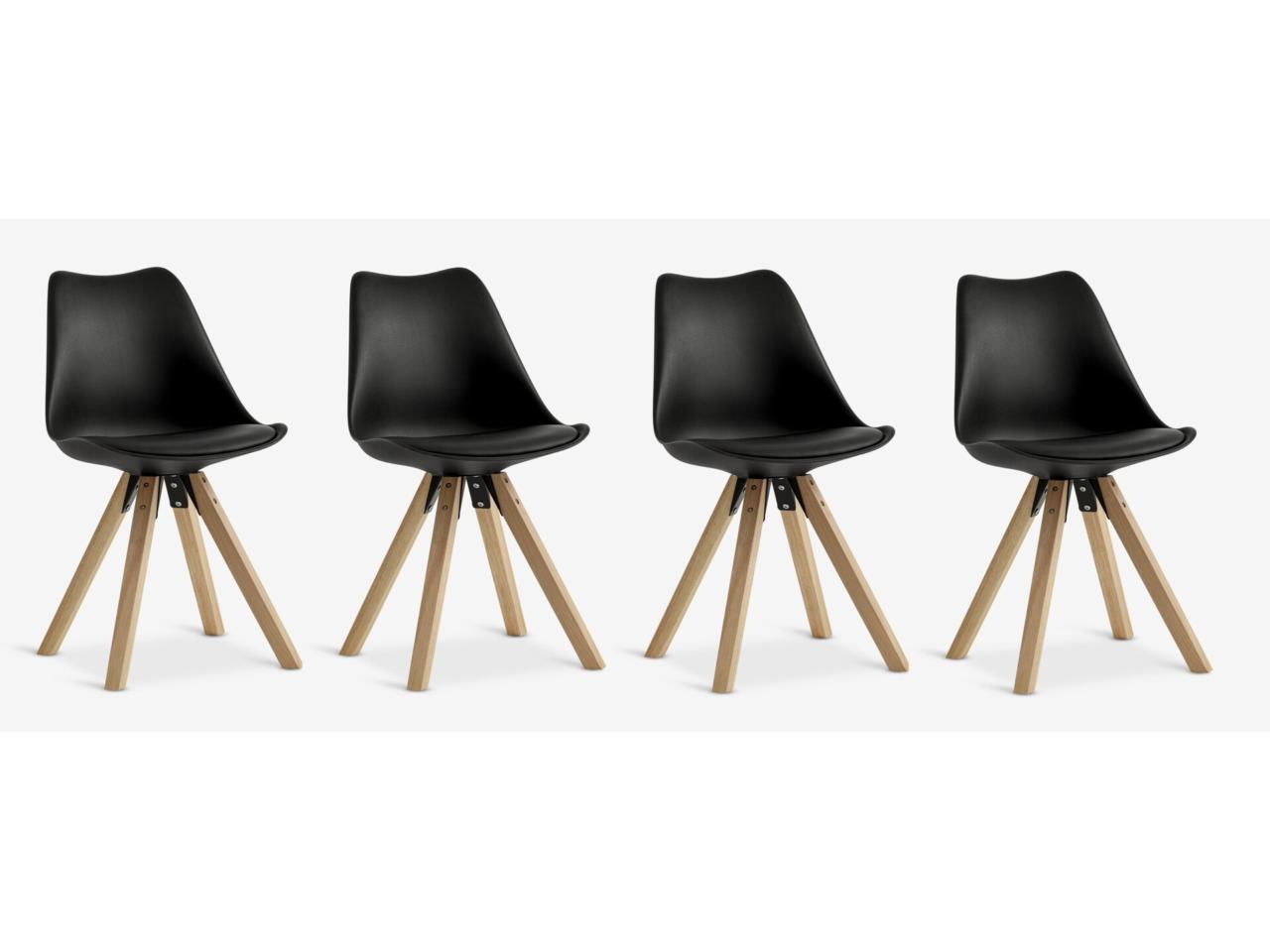 * 4 Sillas de comedor BLOKHUS polipiel negro/natural. Sillas con asiento moldeado negro y cojín fijo de polipiel a juego y patas de madera maciza.