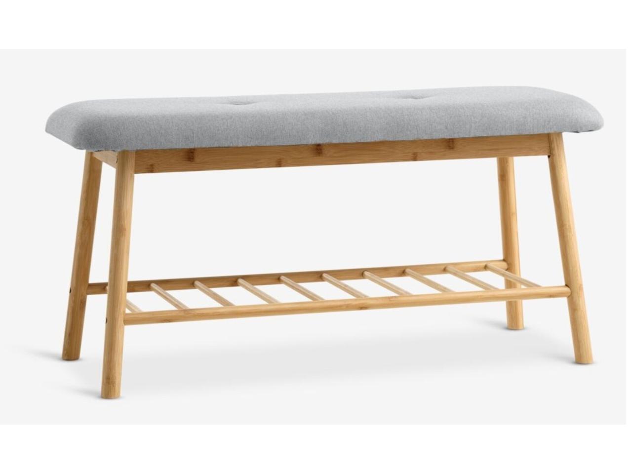 * Banco VANDSTED con estante tela gris/bambú